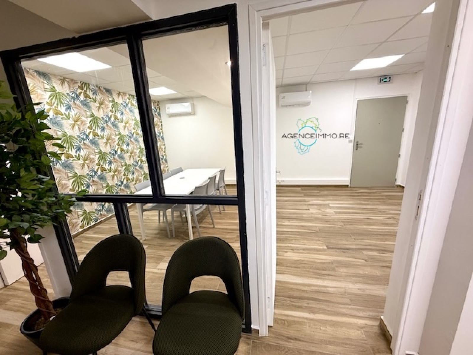 Il comprend son local climatisé + une cuisine partagée, un WC aux normes PMR, 1 salle de réunion partagée, 1 stationnement